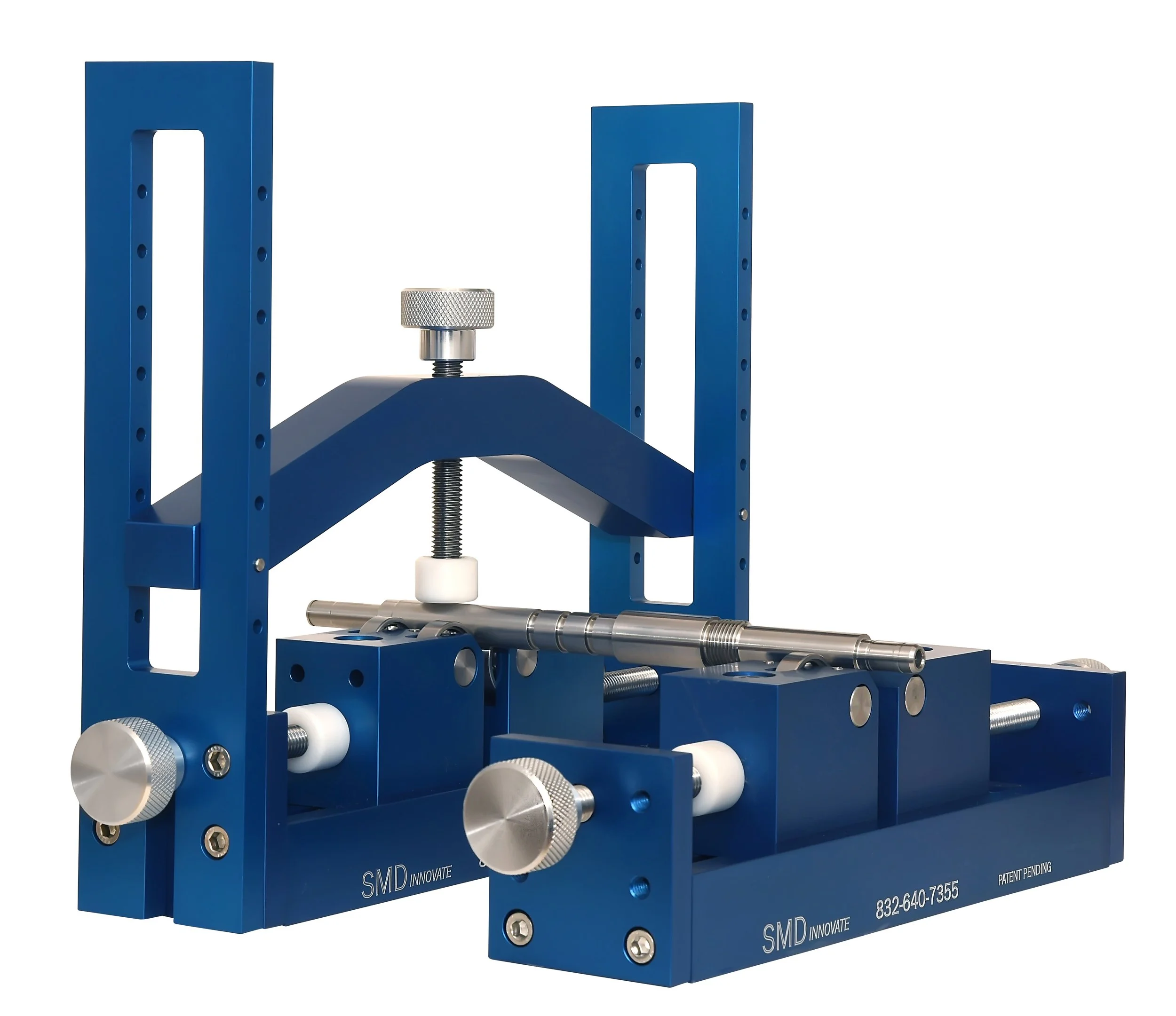 Orient mill details even on short parts with our double bearing slide. Lock part into position with locking bearings and Delrin tipped locking screw on Top Clamp. To level a part simply adjust slides into approximate position. Adjust slides with knurled / delrin adjustment knobs until indicated level and lock slider blocks.